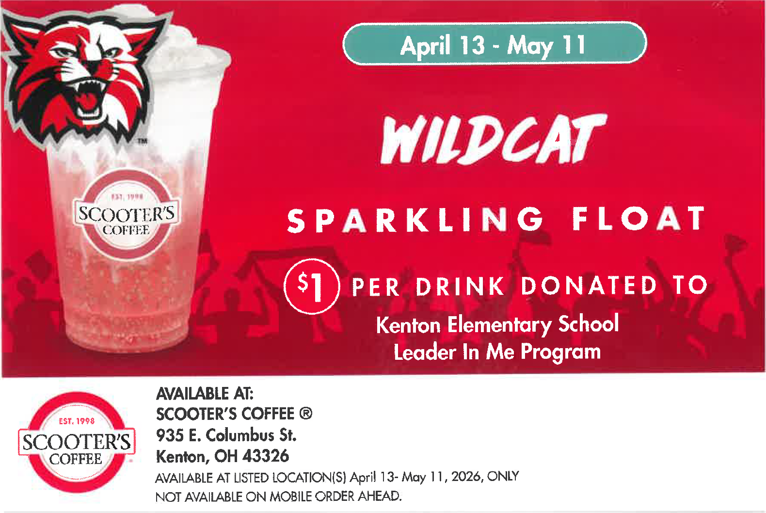 Kenton Elementary Schools and Scooter's Coffee are proud to partner to bring the community the "Wildcat Sparkling Float." The drink is available exclusively at the Kenton Scooter's Coffee location, and $1 per drink will be donated to the Kenton Elementary… Read the rest